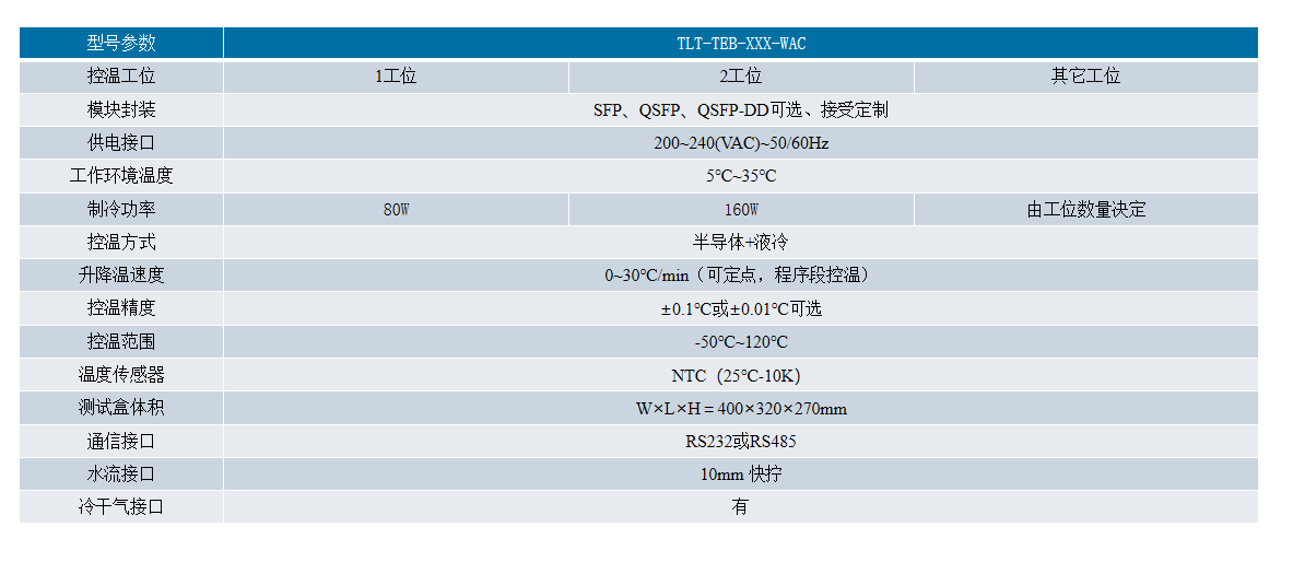本系列的“雙工位測試盒”是建立在半導(dǎo)體制冷片(熱電制冷片)基礎(chǔ)上設(shè)計的高性能溫度控制系統(tǒng),其特點(diǎn)是高精度和高穩(wěn)定度、長壽命、體積小、無噪聲、無磨損、無振動、無污染、既可制冷又可加熱等優(yōu)點(diǎn)。 控溫速度快,溫度均勻性好,常溫25℃降至-45℃時間為小于150S,遙遙領(lǐng)先行業(yè)。該設(shè)備可以廣泛應(yīng)用于光模塊、光器件及其組件、小型和微型化封裝的電子產(chǎn)品,在研發(fā)、生產(chǎn)環(huán)節(jié)的高低溫測試中。該儀器具備如下特點(diǎn),能有效幫助企業(yè)提高生產(chǎn)效率、降低生產(chǎn)成本、提升產(chǎn)能。解決了當(dāng)前行業(yè)通用方法/儀器應(yīng)帶來的各種弊端和不足。